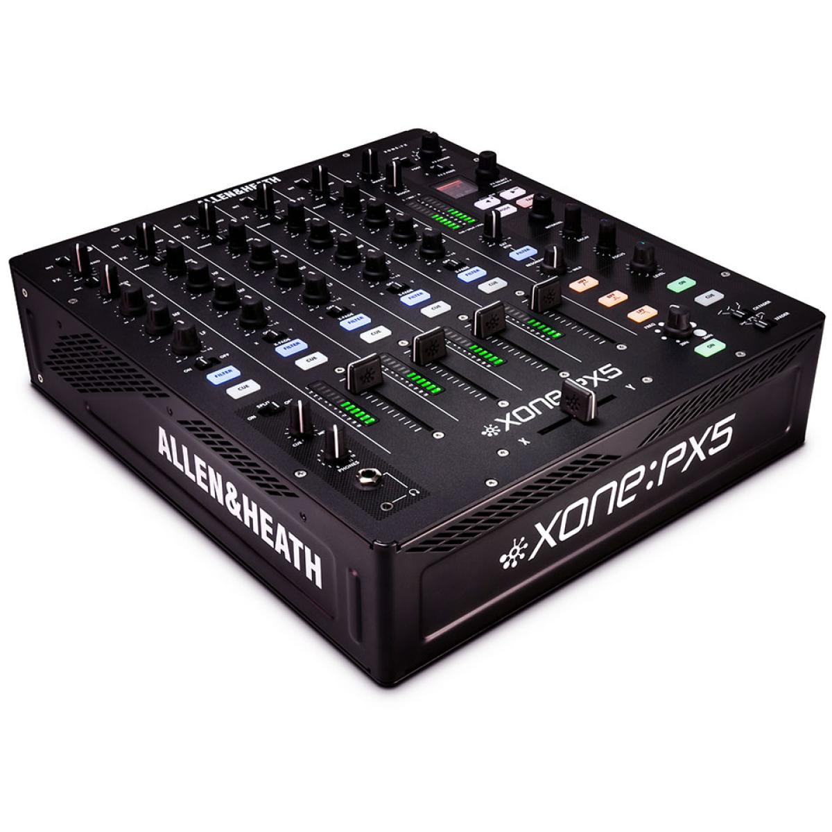 Pronto para lidar com shows - grandes e pequenos. O melhor companheiro do estande. O Allen & Heath XONE: PX5 Mixer analógico FX DJ é um mixer de 4 canais com uma placa de som de alta qualidade. Ele suporta o controle DVS do software Traktor Scratch Pro 2 da Native Instruments, o que significa que ele pode se mover facilmente ao lado de outros equipamentos e softwares.