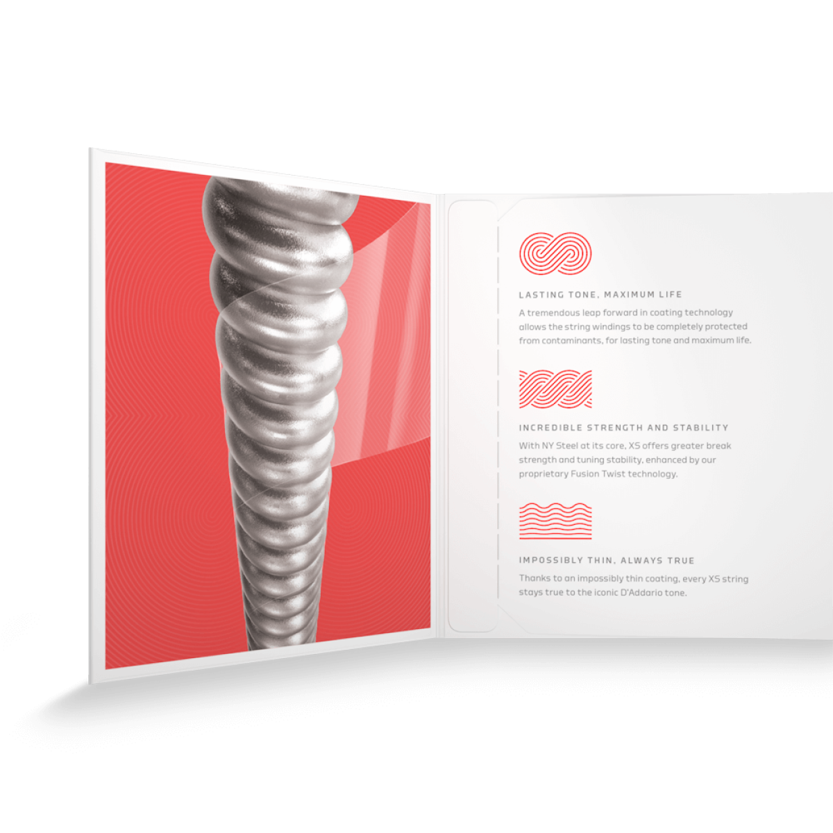 As cordas XS Nickel têm a vida mais longa de qualquer corda eléctrica D'Addario, mais uma sensação suave e rápida, graças ao revestimento ultrafino da película XS.