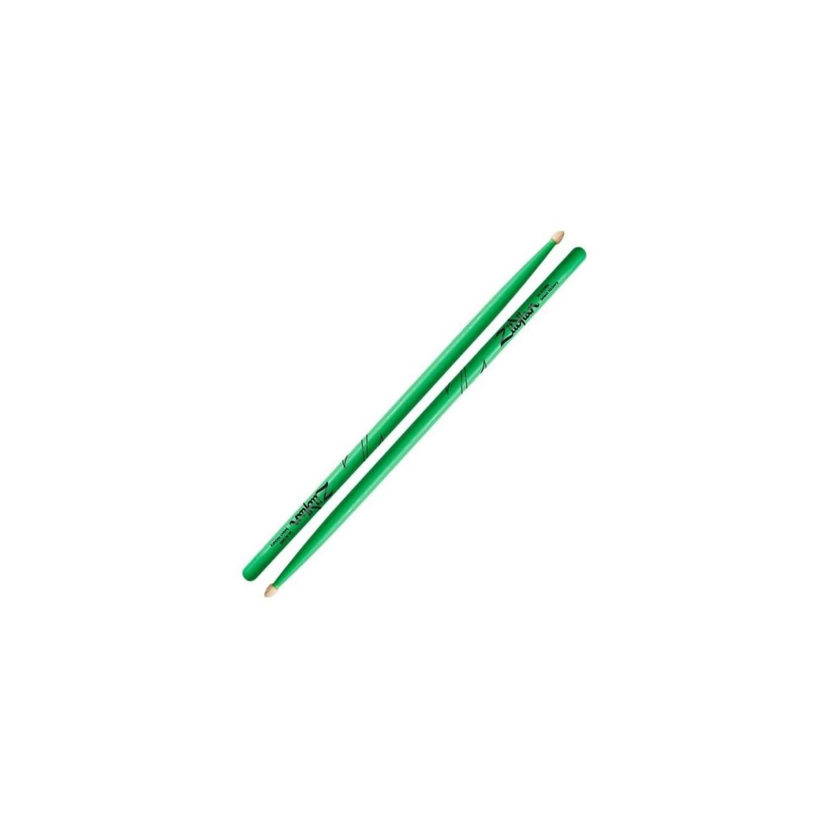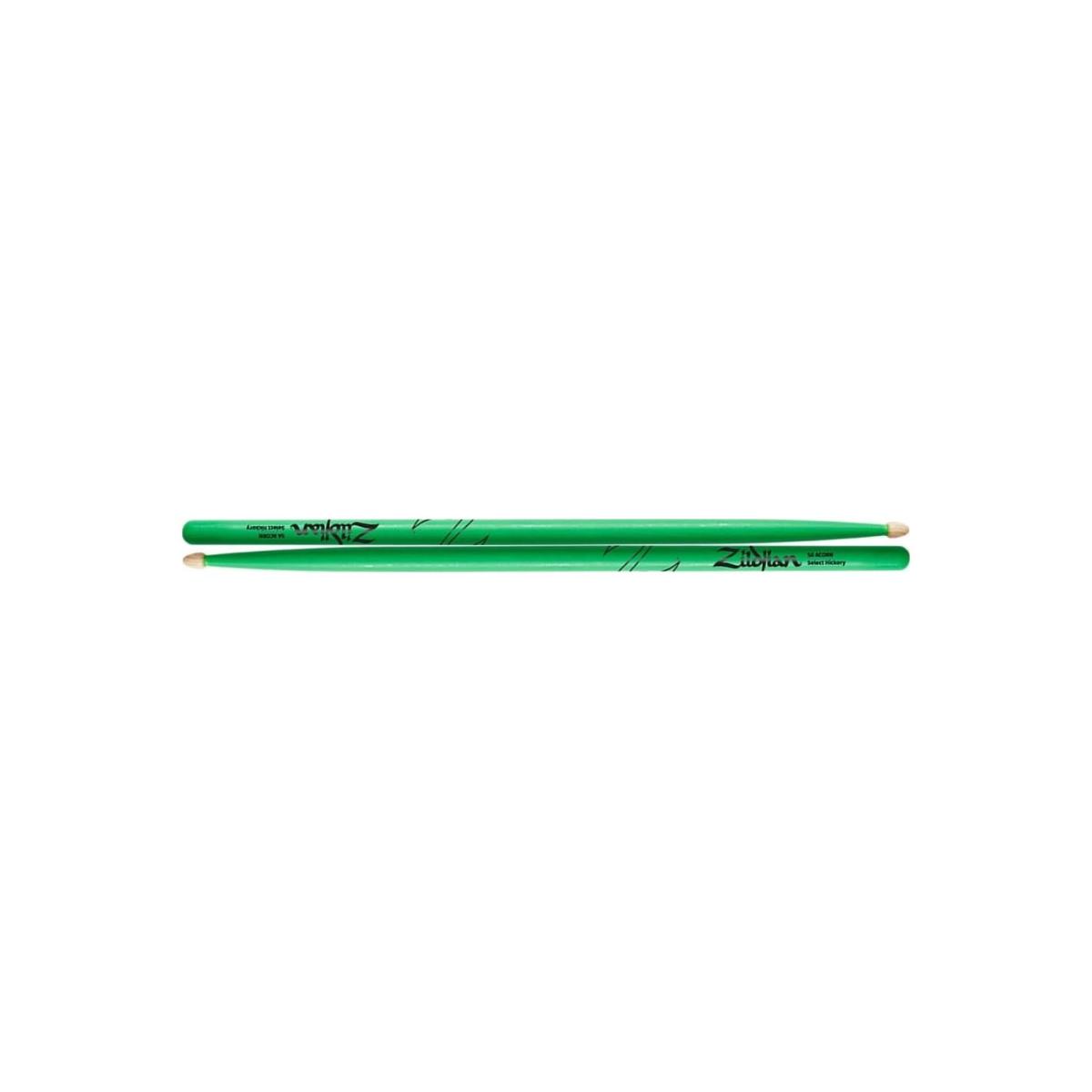 • ZILDJIAN 5ACWDGG Baquetas 5A Hickory verde néon;