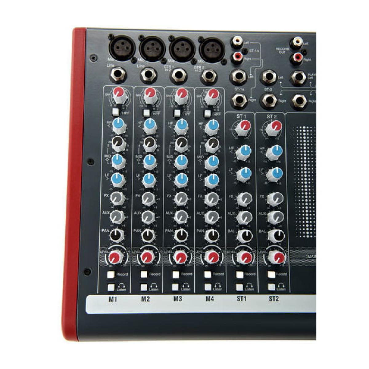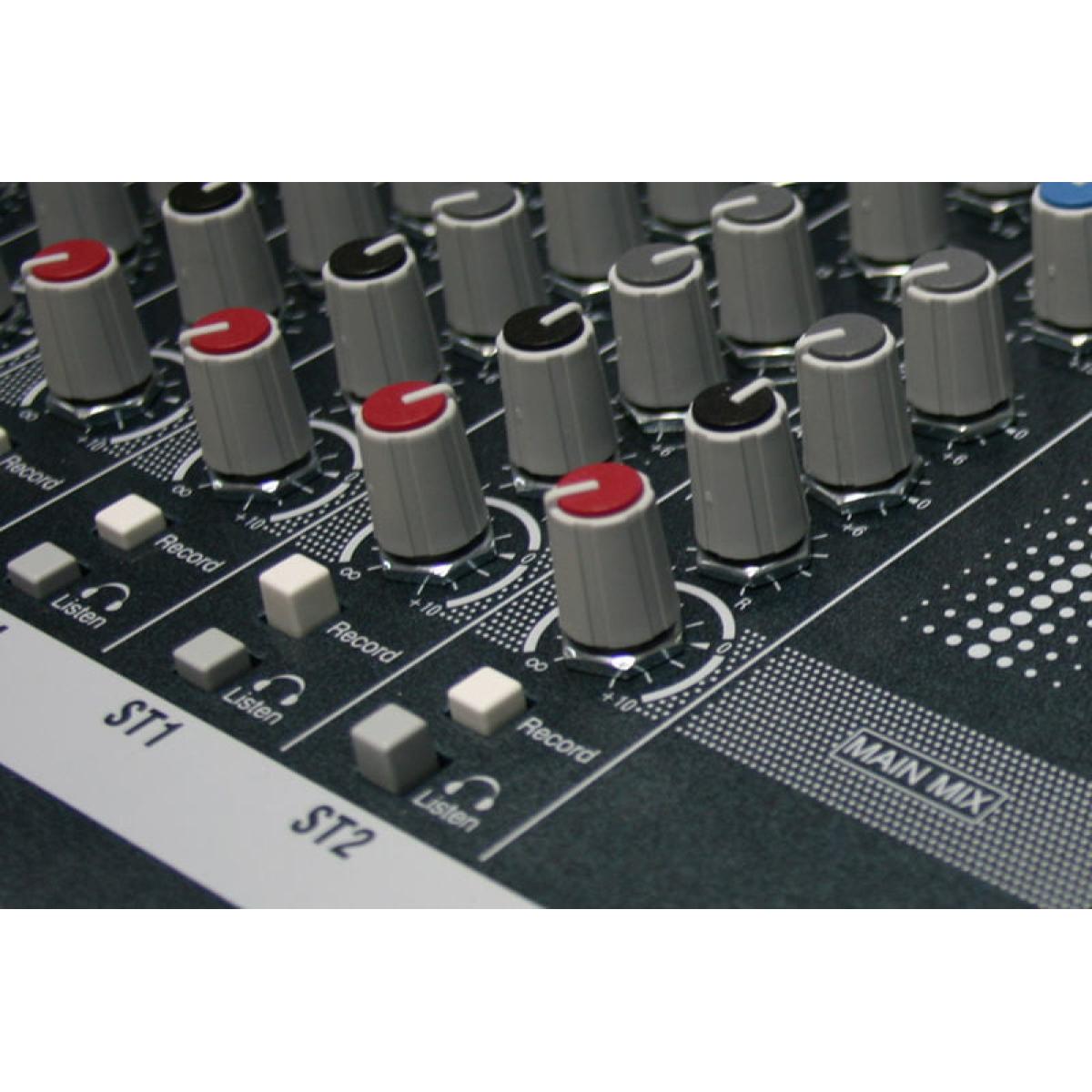 Uma das grandes vantagens da series ZED é o número e a variedade de itens que você pode conectar. Além dos dezasseis canais mono, existem dois canais estéreo duplos, cada um com uma entrada estéreo principal nas tomadas e com entradas adicionais no phono. tomadas. O retorno USB pode ser selecionado para uma das entradas adicionais para alimentar o barramento LR principal ou o canal estéreo.