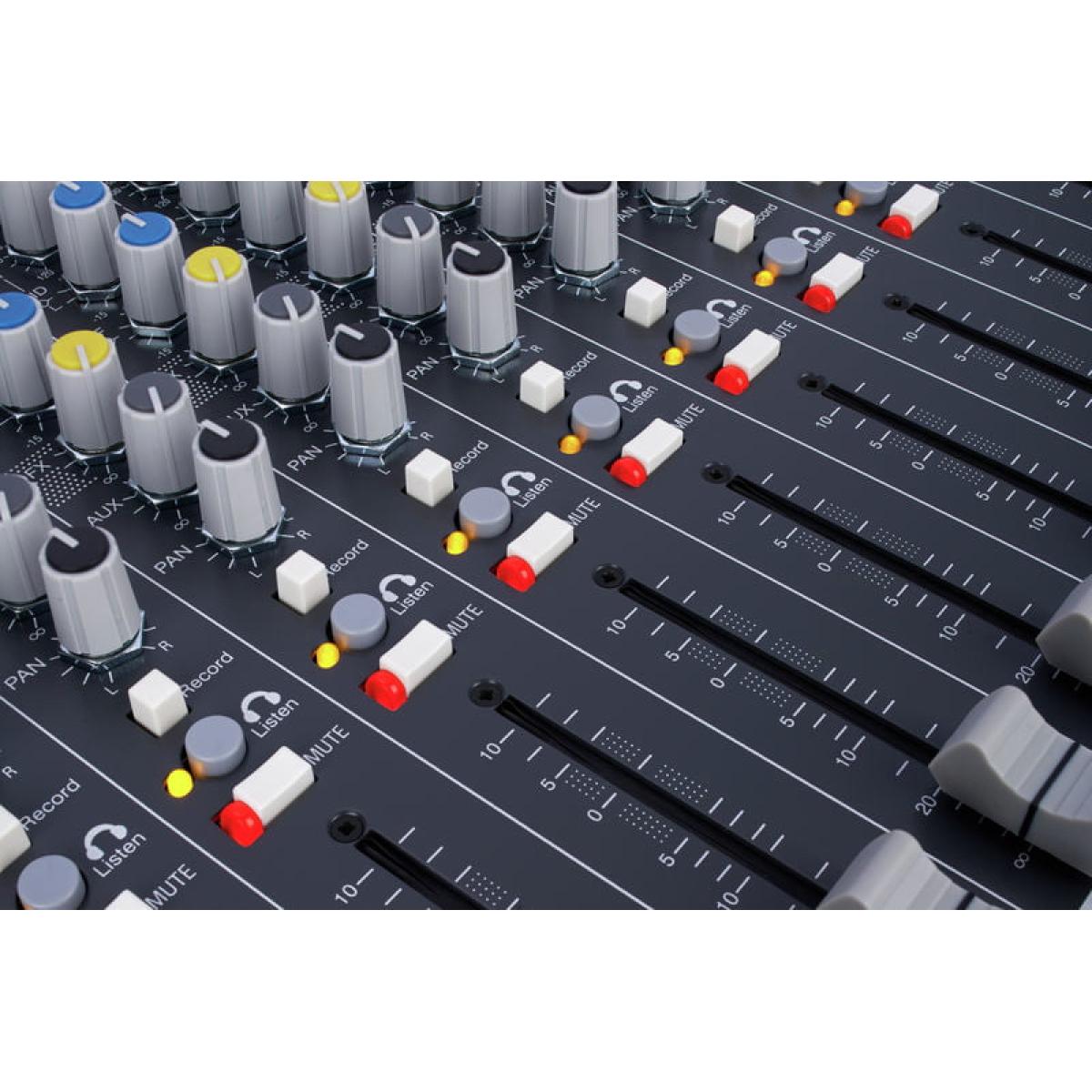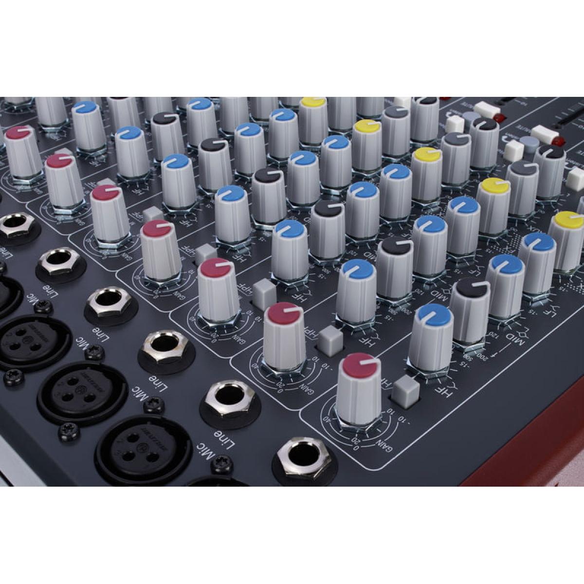 A flexibilidade e a qualidade desses misturadores os destacam da multidão. Você pode conectar suas guitarras ou instrumentos diretamente às entradas discretas de alta impedância FET classe A, atender até quatro microfones, duas fontes estéreo com compatibilidade com MP3 player, saídas de gravação separadas em duas faixas e uma entrada de reprodução estéreo para repetição em duas faixas ou talvez música de intervalo de um CD player, saídas estéreo principais XLR com inserções, monitoramento abrangente com auscultadores e saídas de colunas para monitores separados, phantom power de 48V, comutação de nível DI para sub-mixagem e, principalmente, os mesmos algoritmos de efeitos digitais que aqueles usado em nossos principais consoles digitais, custando 150 vezes mais!